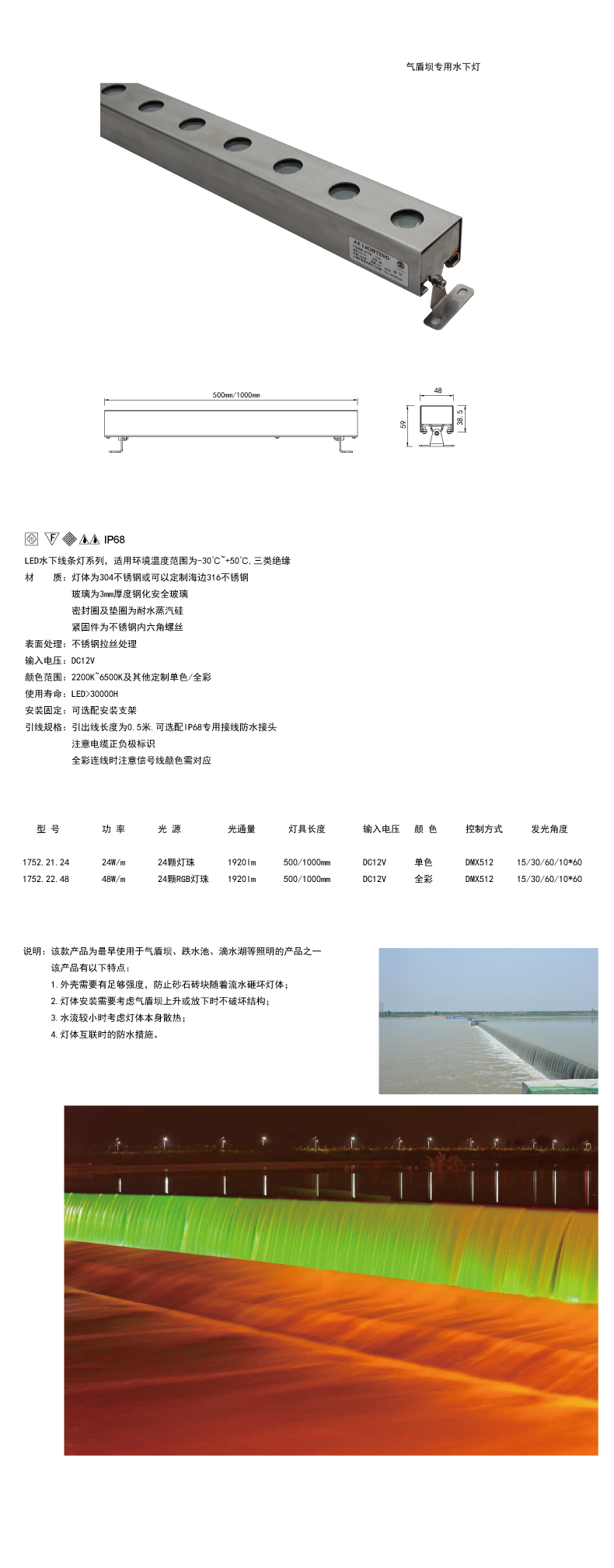 寬48大功率不銹鋼線條水下燈24-48W