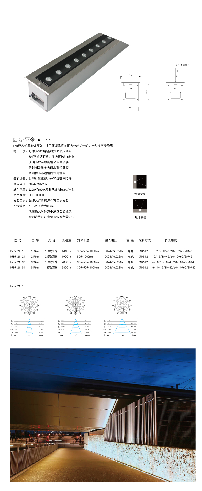 寬116線條埋地?zé)?8-54W不銹鋼面板