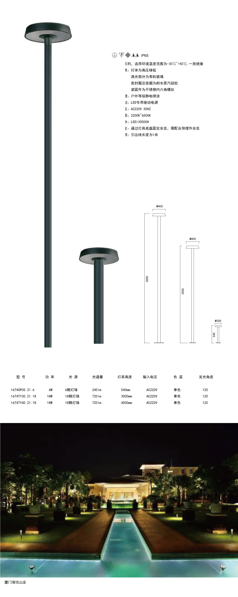 直徑200X400mm直桿蘑菇頭草坪庭院燈系列