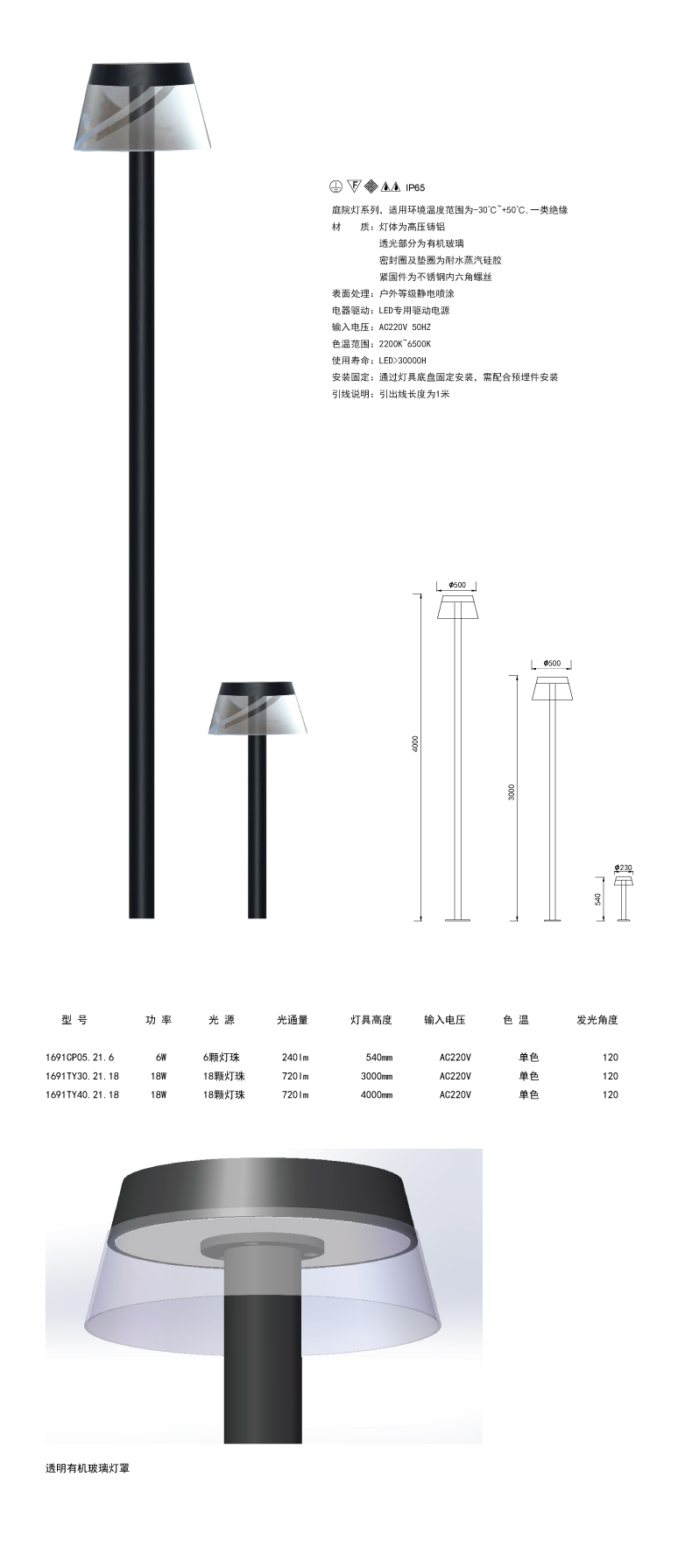 直徑230X500mm直桿帶PC罩草坪庭院燈系列